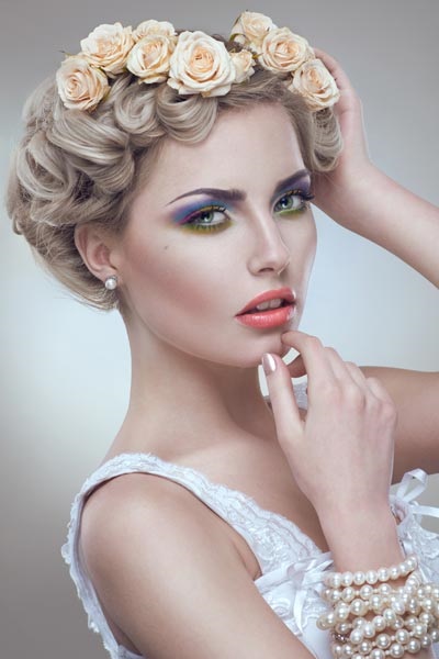 - Geedziĝa krono por mallongaj haroj. Al tia kombilo la krono estas plej taŭga, kiu konsistas el unu, maksimumo de tri floroj. Tre milde aspektas strikta rubando kun malgranda floro sur ĝia flanko.