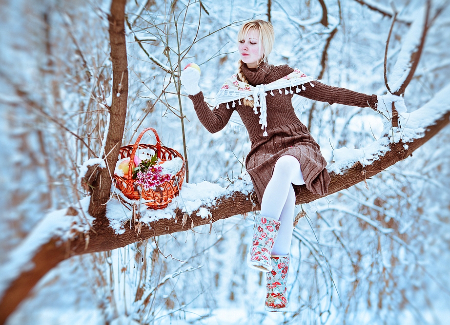 Portretaj portretoj en vintro en la arbaro estas ankaŭ tre belaj. Tamen, se vi volas fari similan enketon, vi devas trovi vere lertan profesian fotiston. Ĉar por la portreto transdoni ne nur la emfazon al la modelo, sed ankaŭ pri la magio de la naturo, unu devas havi profesian lertecon kaj vidi belajn pafojn sen ĉambro.
